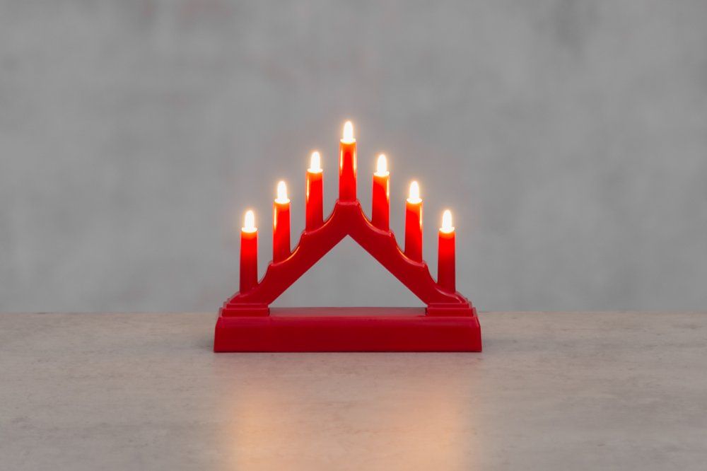 Finnlumorin minikokoinen 7-haarainen kynttelikkö tuo joulun tunnelmaa pieneenkin tilaan. Punainen runko ja lämpimän valkoiset LED-valot. Paristokäyttöinen (2×AA, ei mukana), joten sijoittaminen on helppoa ilman pistorasiaa.